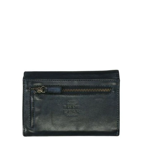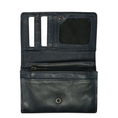 Compact formaat portemonnee met overslag en drukknoopsluiting. Deze portemonnee heeft 5 kaarthouders, 2 steekvakjes en een intern ritsvak voor kleingeld. Met als extra nog een klein ritsvakje achterop.