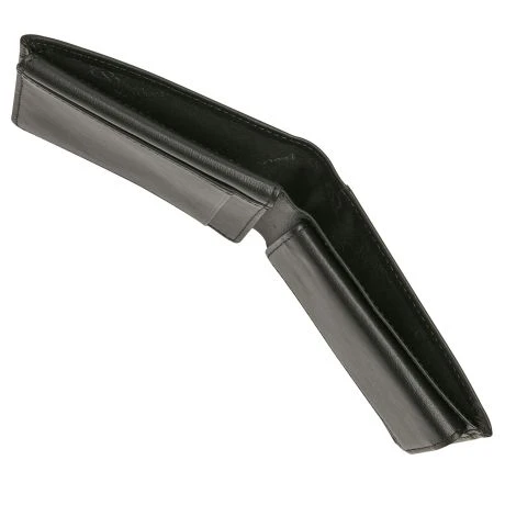 Compact formaat billfold portemonnee uit de Vita serie van Castelijn & Beerens. Met 5 creditcardvakjes, een uitklapbaar flapje en met drukknop afgesloten vakje voor muntgeld. De leren portemonnees van de Vita serie van Castelijn & Beerens zijn een zakelijke no-nonsense lijn. De portemonnee is voorzien van een high-tech folie, dat het uitlezen van de persoonlijke gegevens via de RFID-chip op pasjes volledig blokkeert. De producten van Vita zijn gemaakt van soepele rundernappa die door en door geverfd is voor een ondoordringbare zwarte kleur. Voor de afwerking is een rond en nikkelkleurig C&B-logo gebruikt dat de no-nonsense-look van deze lijn afrondt.
