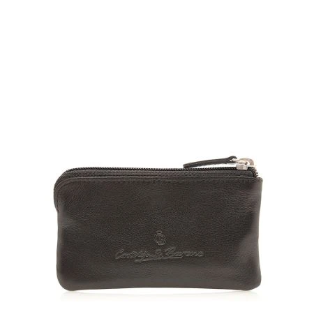Praktische en stijlvolle sleuteletui uit de Vita serie van Castelijn & Beerens. bestaande uit 2 vakjes met 2 ritsen en 2 sleutelringen. De leren portemonnees van de Vita serie van Castelijn & Beerens, een zakelijke no-nonsense lijn. De producten van Vita zijn gemaakt van soepele rundernappa die door en door geverfd is voor een ondoordringbare zwarte kleur. Voor de afwerking is een rond en nikkelkleurig C&B-logo gebruikt dat de no-nonsense-look van deze lijn afrondt.