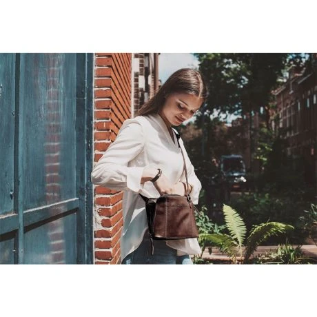 Schoudertas uit de River serie van Chesterfield. Deze tas is gemaakt van wax pull up leer. Deze hoogwaardige leersoort wordt gekenmerkt door een vintage uitstraling met een gladde, licht glanzende afwerking. De kleine handtas heeft een stijlvolle uitstraling en biedt voldoende ruimte voor een avondje uit. Door zijn doorlopende rits kun je gemakkelijk bij je spullen.