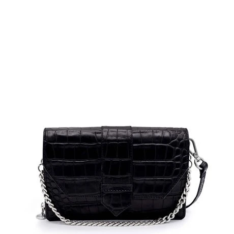 Stijlvol en praktisch telefoontasje van MŌSZ. De tas biedt niet alleen ruimte aan je mobiele telefoon (in alle maten) maar heeft ook 10 kaarthouders met RFID bescherming, wat het skimmen van je pasjes onmogelijk maakt. Daarnaast is er ruimte voor brief- en kleingeld, een speciaal opbergvakje voor je oordopjes en dan nog is er genoeg ruimte voor je dagelijkse ‘kleinere’ spulletjes. Het telefoontasje is op twee verschillende manieren te dragen. Crossbody dankzij de verstelbare en afneembare schouderriem en als handtas dankzij de korte schakelketting.