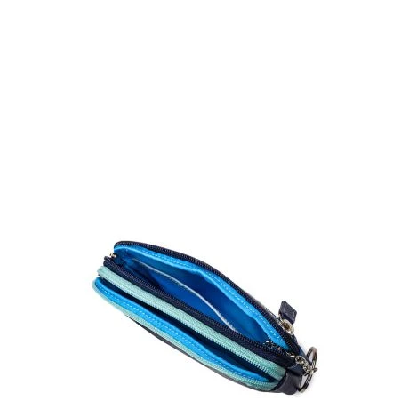 Mywalit Small Leather Double Zip Purse Portemonnee Denim